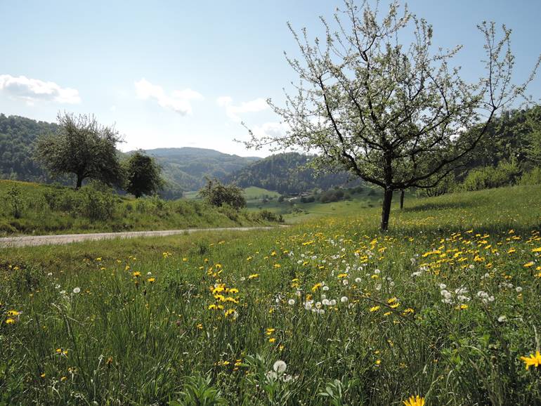 Auf einer wunderschönen Wanderung sind wir von Wittnau aus über den Tiersteinberg, die Ruinen Tierstein und Alt Homburg zurück nach Wittnau gelaufen. Dort hat die Vespa brav auf uns gewartet.
